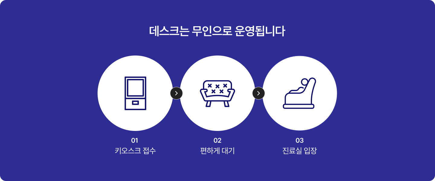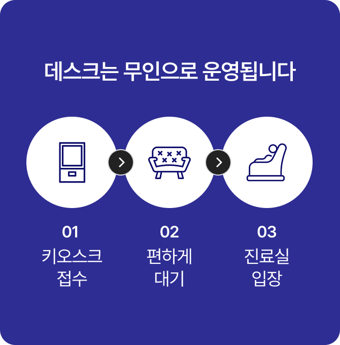 간편한 예약, 접수, 수납을 통해 대기 시간을 줄이고 의료진이 더욱 집중된 진료를 제공할 수 있도록 돕습니다.